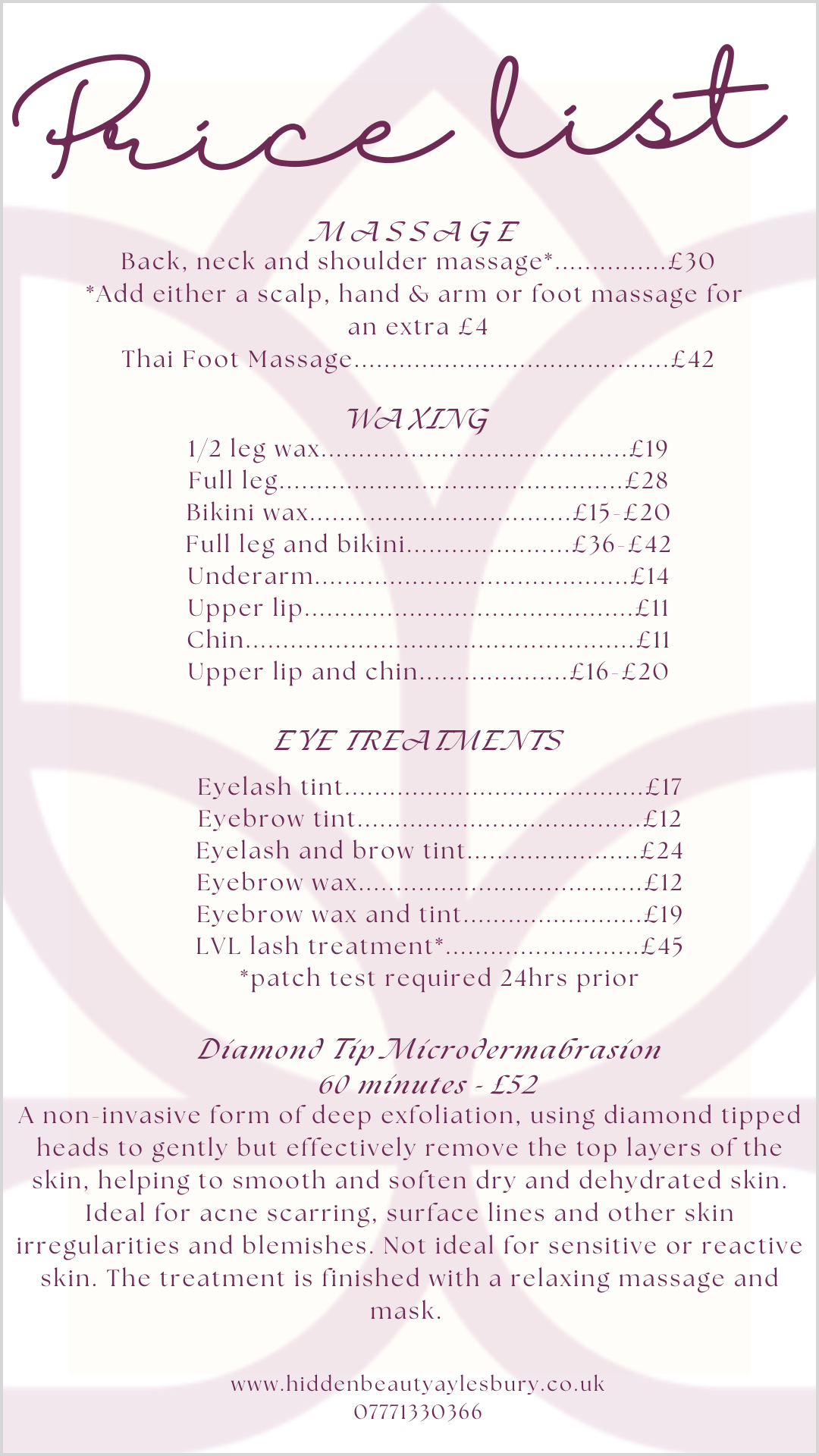 Hidden Beauty - Beauty Salon based in Fairford Leys, Aylesbury, Bucks. Tel. 07771 330366